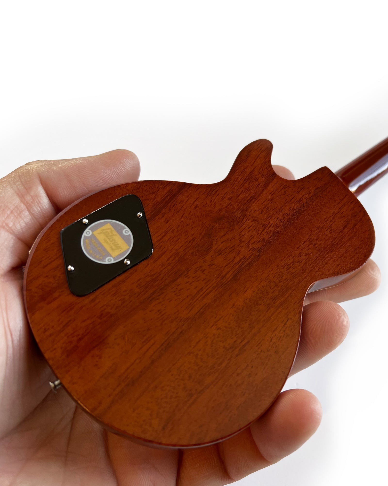 This miniature replica model honors the Holy Grail of electric guitars. The stain on this handcrafted collectible is an amazing reproduction of the original solid body instrument.