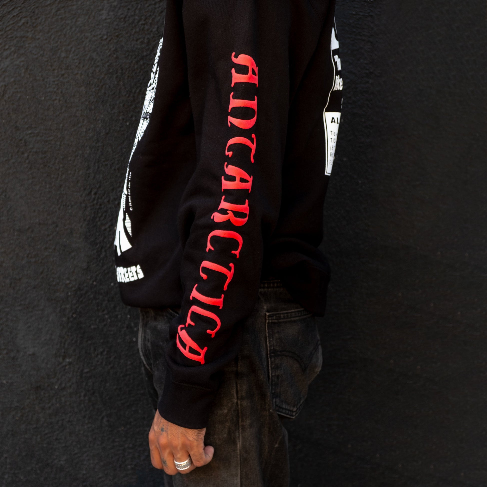 Screen Print on Front and Back with Puff Ink Detail on Sleeve