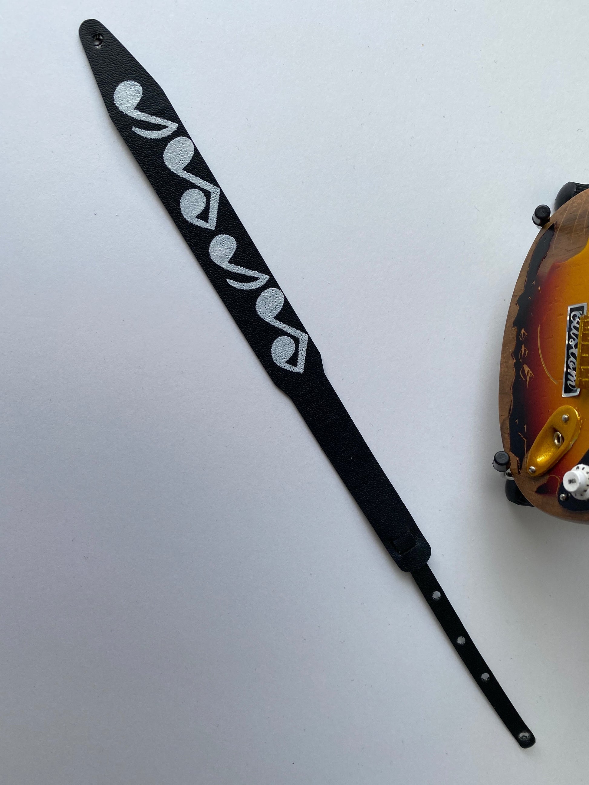 AXE HEAVEN® Mini Guitar Strap - Stevie Ray Vaughan SRV Musical Note Black Strap